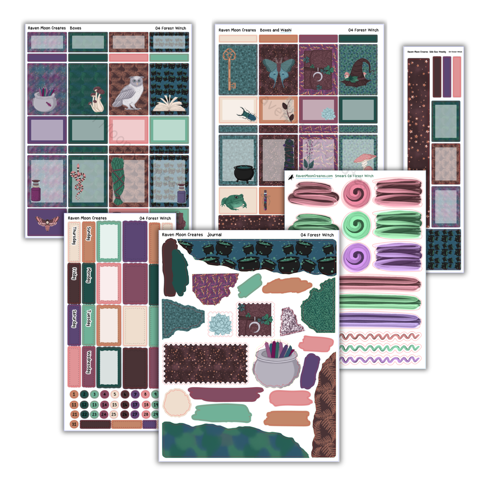 Forest Witch Planner Sticker Kit | Halloween and Fall Stickers for Journals & Planners | Seasonal Autumn Sticker Sheets | Witchy Vibes