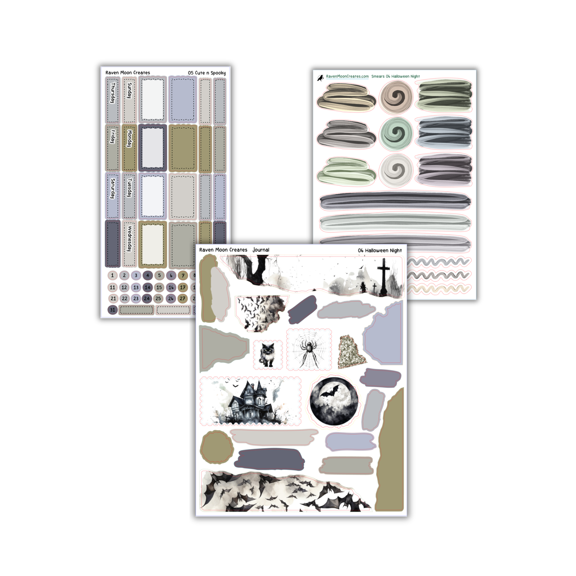 Halloween Night Planner Sticker Kit | Halloween and Fall Stickers for Journals & Planners | Seasonal Autumn Sticker Sheets | Spooky Vibes